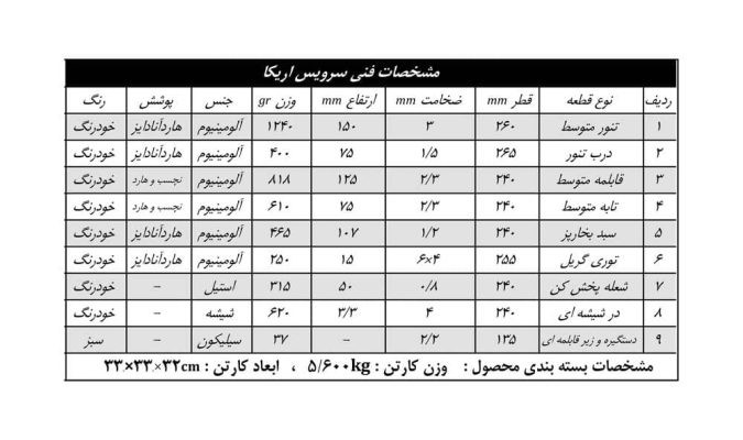دستهبندی: سرویس آشپزخانه